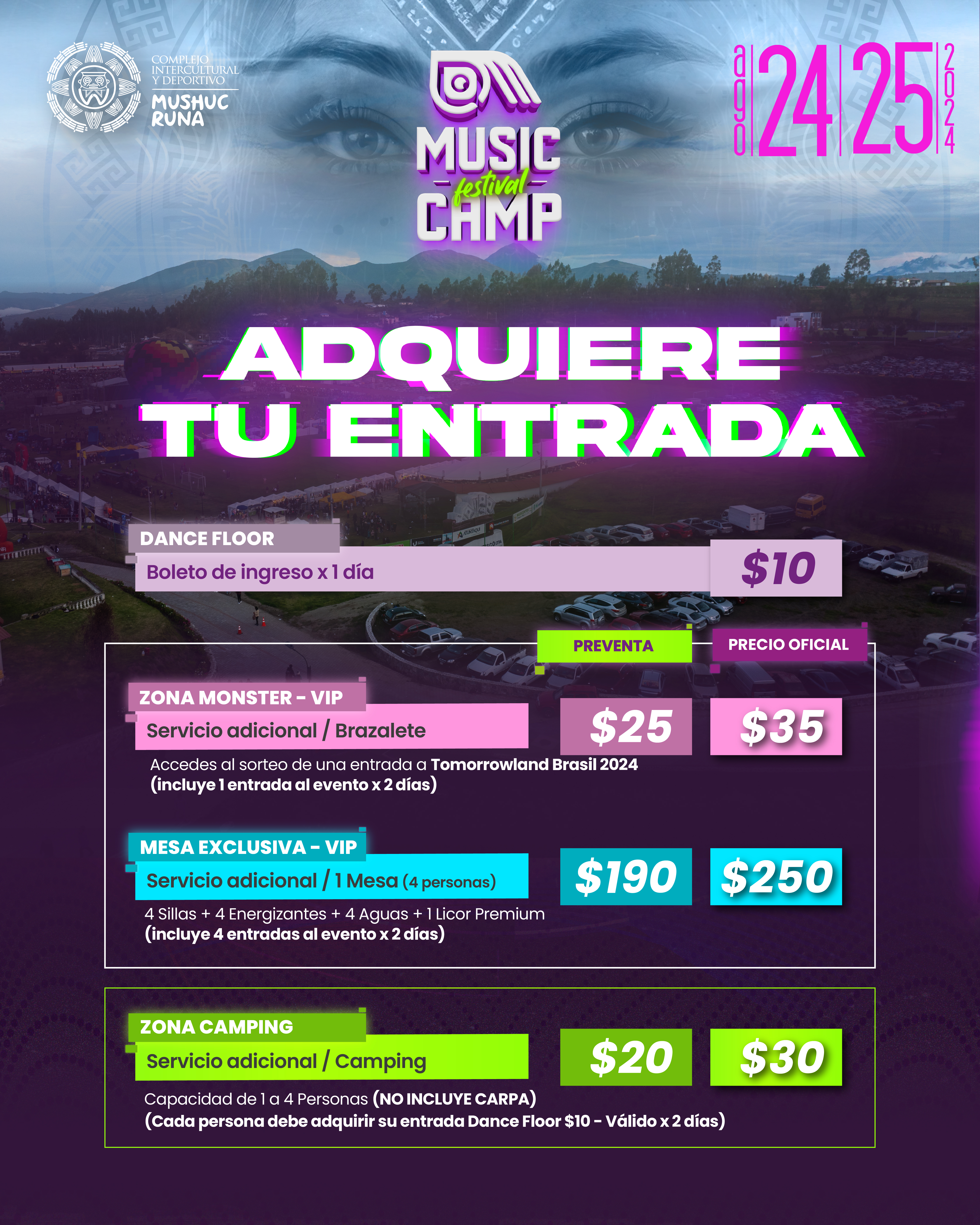 ¡Prepárate para vivir la experiencia completa del festival desde el momento en que llegues a nuestro área de camping!